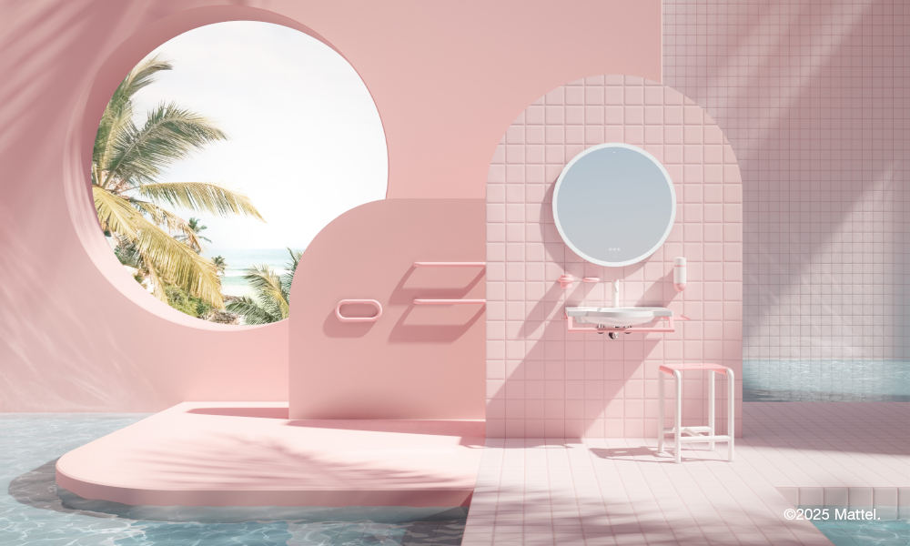Die Barbie™ x HEWI Kollektion ist ab sofort bei skybad.de - dem Onlineshop für Wohlfühlbäder erhältlich.