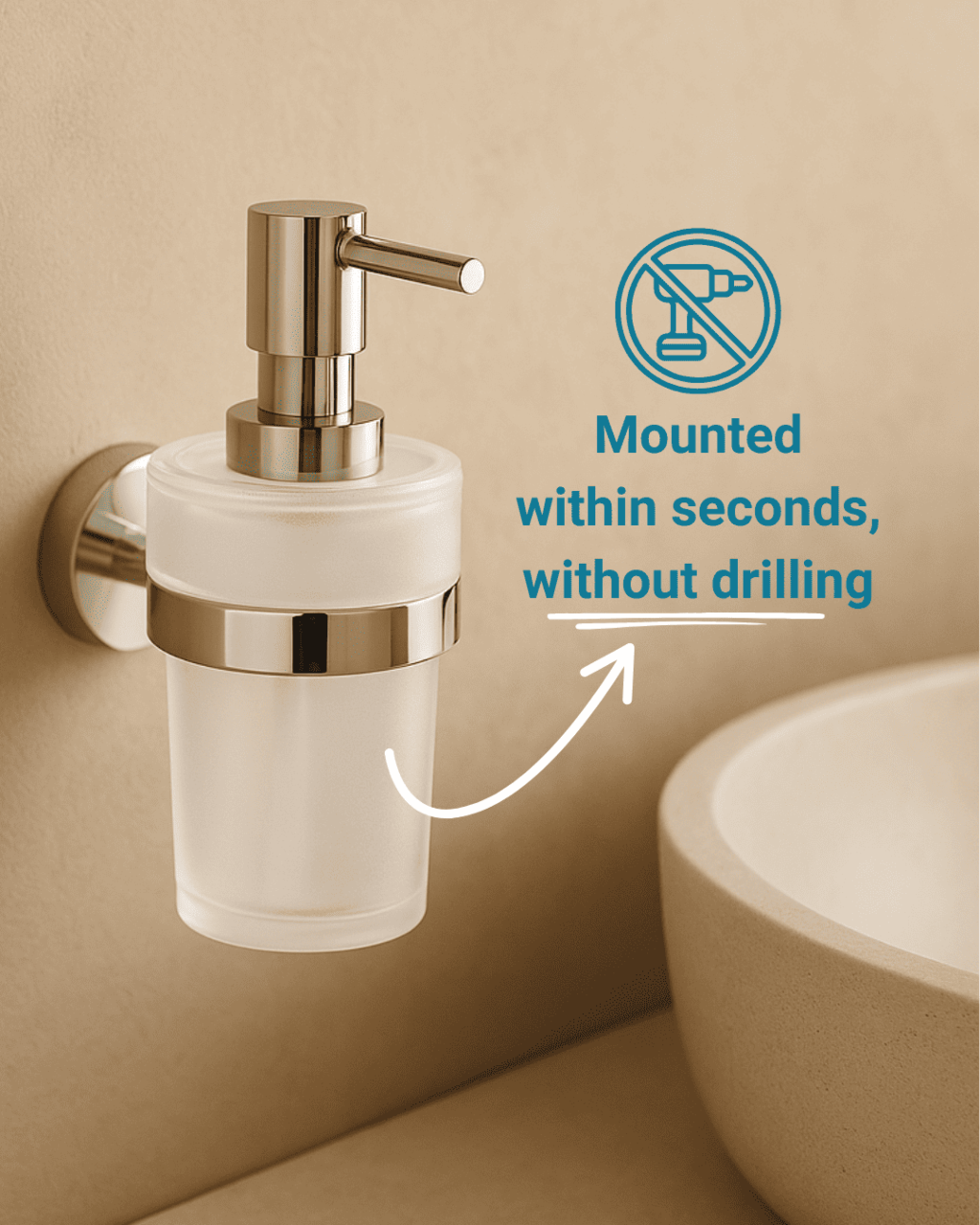 Bathroom accessories for gluing - no drilling required