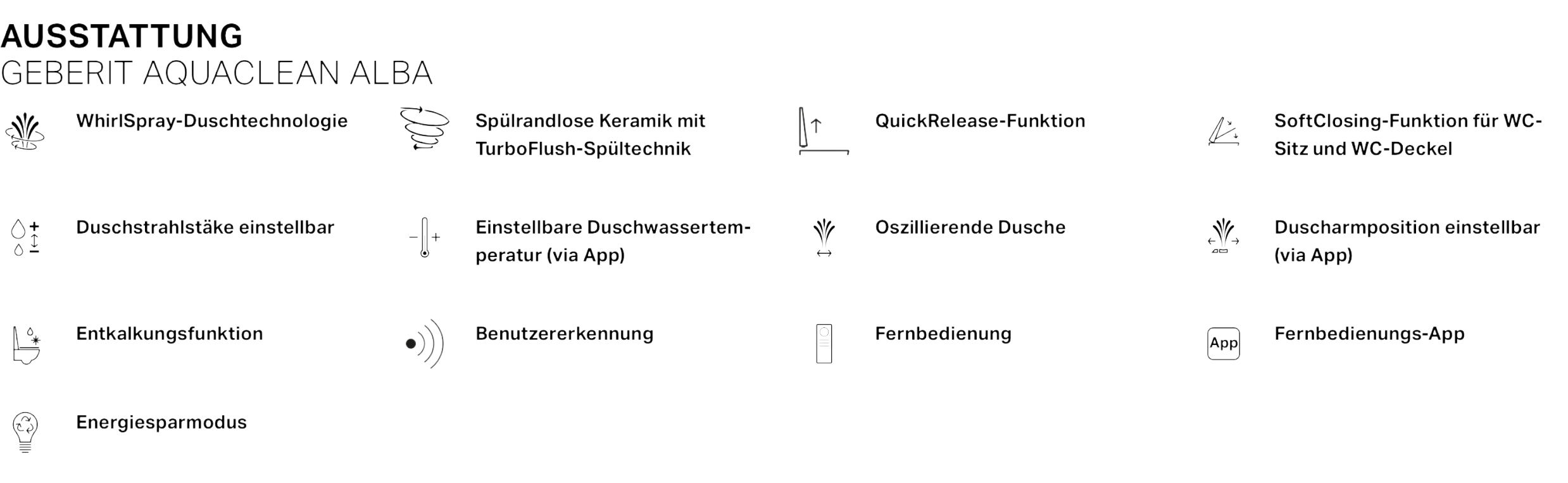 Das Geberit AquaClean Alba setzt einen neuen Standard im Bereich der Badezimmerhygiene. Mit seinen grundlegenden Dusch-WC-Funktionen ermöglicht es einen erschwinglichen Einstieg in die faszinierende Welt der modernen Toilettenhygiene.