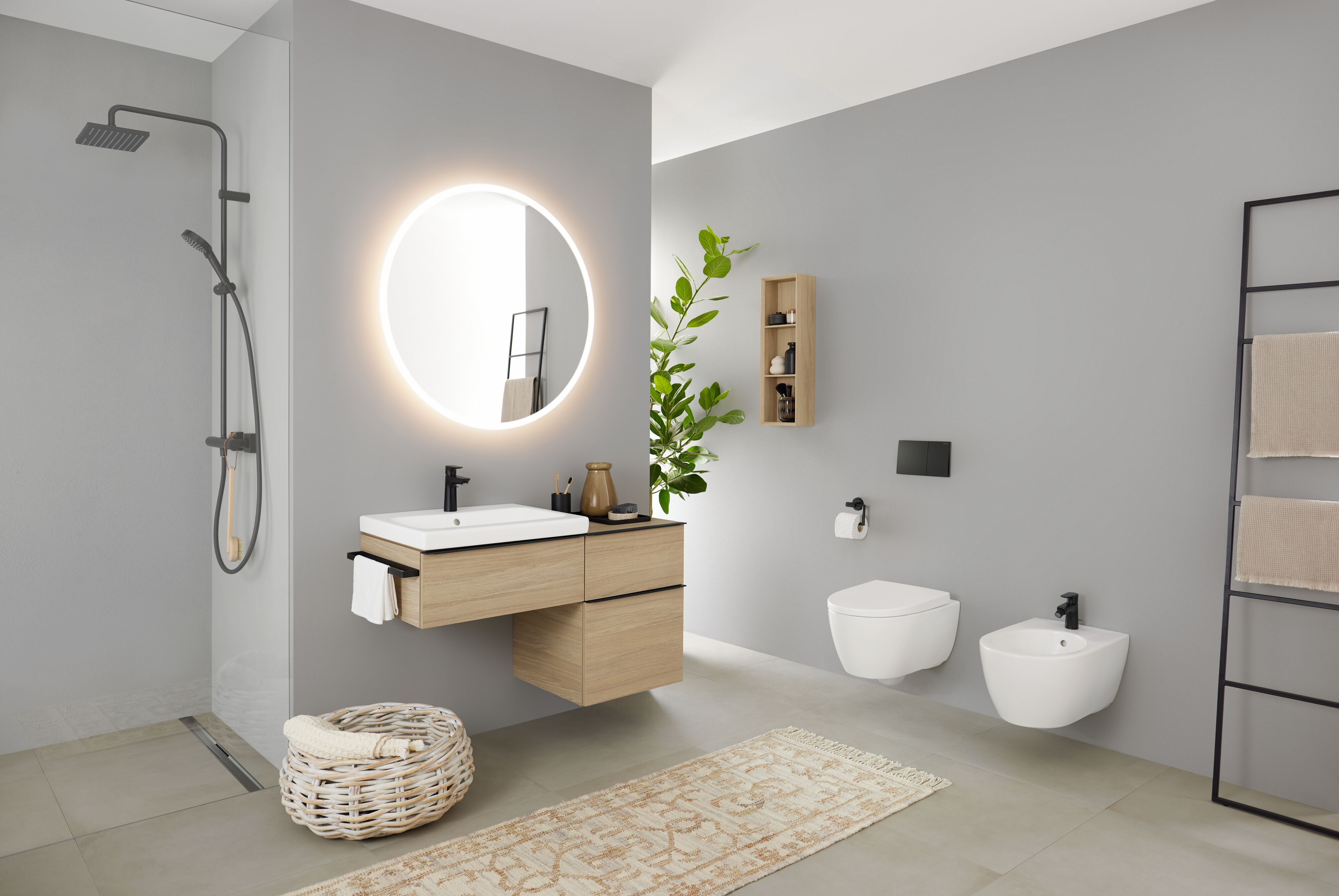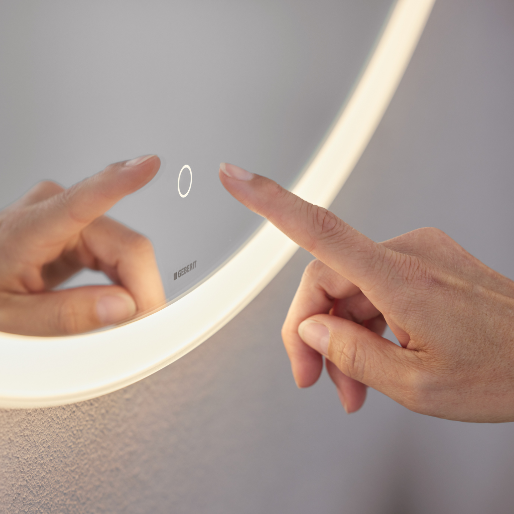 Geberit Lichtspiegel mit warmweißer LED-Beleuchtung sorgen für eine optimale Ausleuchtung beim Waschen, Schminken oder Rasieren. Sie ergänzen harmonisch die Keramiken und Badmöbel der Geberit Badserien und schaffen ein wohnliches Ambiente in jedem Badezimmer. Modelle in zeitlosem Design und in verschiedenen Größen bietet flexible Gestaltungsmöglichkeiten - ob im Familienbad oder im Gästebad. Komfort-Extras wie die Anti-Beschlag-Spiegelheizung und die intuitive Touch-Bedienung der Geberit Option Plus Modelle bringen moderne Funktionalität ins Bad. Ausführungen in schwarz matt setzen elegante Akzente. Die Geberit Option Lichtspiegel in rund und oval schaffen dank zusätzlicher indirekter Beleuchtung eine gemütliche Atmosphäre. Das Einstiegsmodell Geberit Option Basic kann dank zahlreichen Formaten für jedes Bad eingesetzt werden. Eine dezente Lichtleiste am oberen Spiegelrand sorgt für gleichmäßiges, sanftes Licht.