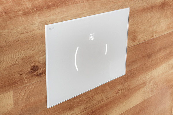 Rundum glänzend Die Betätigungsplatte MEPAzero besticht durch ihr zeitloses Design, das elegant umgesetzt und auf das Wesentliche reduziert ist. Der zentrale Chromring unterstreicht die geometrische Formgebung – die kleinen und großen Spülmenge werden mit nur einer Taste ermöglicht. |