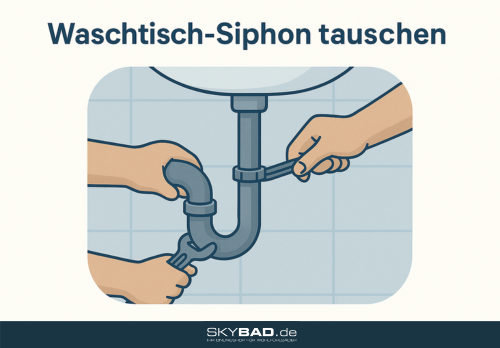Der Siphon – oft als Geruchsverschluss bezeichnet – verhindert, dass unangenehme Kanalgase aus dem Abfluss ins Badezimmer aufsteigen. Mit der Zeit setzen sich jedoch Haare, Seifenreste und Kalk im Rohr ab, was zu Verstopfungen oder Leckagen führen kann. Spätestens wenn Wasser langsam abfließt oder sich Tropfen unter dem Waschbecken sammeln, ist es Zeit für einen Austausch.